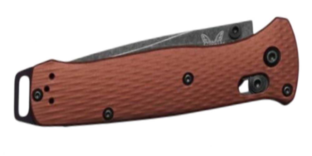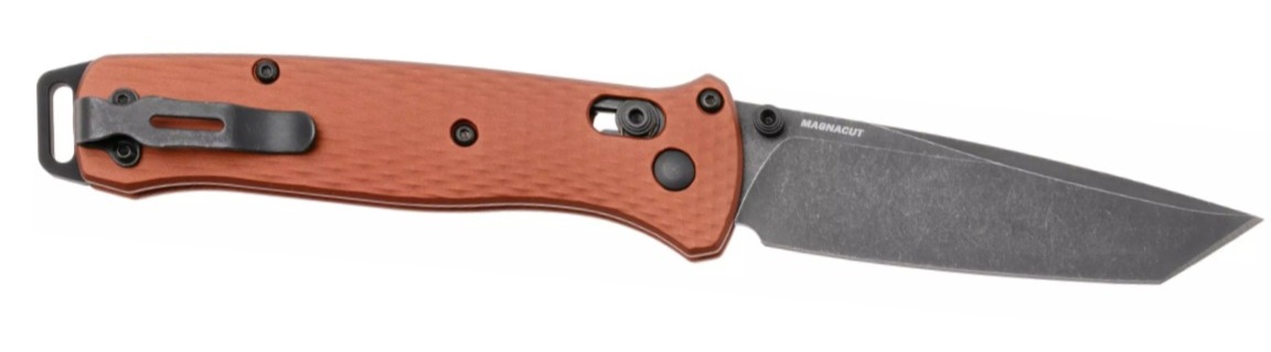 The Bailout® family of tactical folders has long been revered for its combination of no-holds-barred strength and slim, ultralight build, making it an impressive tool on the trail or on the job. The new 537BK-07 Bailout® introduces CPM-MagnaCut stainless super steel with enhanced corrosion-resistance in a DLC Battlewash finish. Together with lightweight, diamond-textured Burnt Copper anodized aluminum handle scales and black oxide hardware, this ruggedized ultralight is ready for the next adventure.