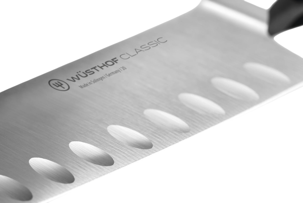 The WÜSTHOF Classic 7″ Hollow Edge Chai Dao combines the shape of a Santoku with that of a Chinese chopping knife. However, it adopts not only the form, but also the functionalities of the two models. Thanks to the slightly curved shape of the blade, the Chai Dao is suitable for both cutting and chopping, especially for a fluid rock-chop. As this knife is particularly finely ground towards the cutting edge it should not be used for chopping bones.