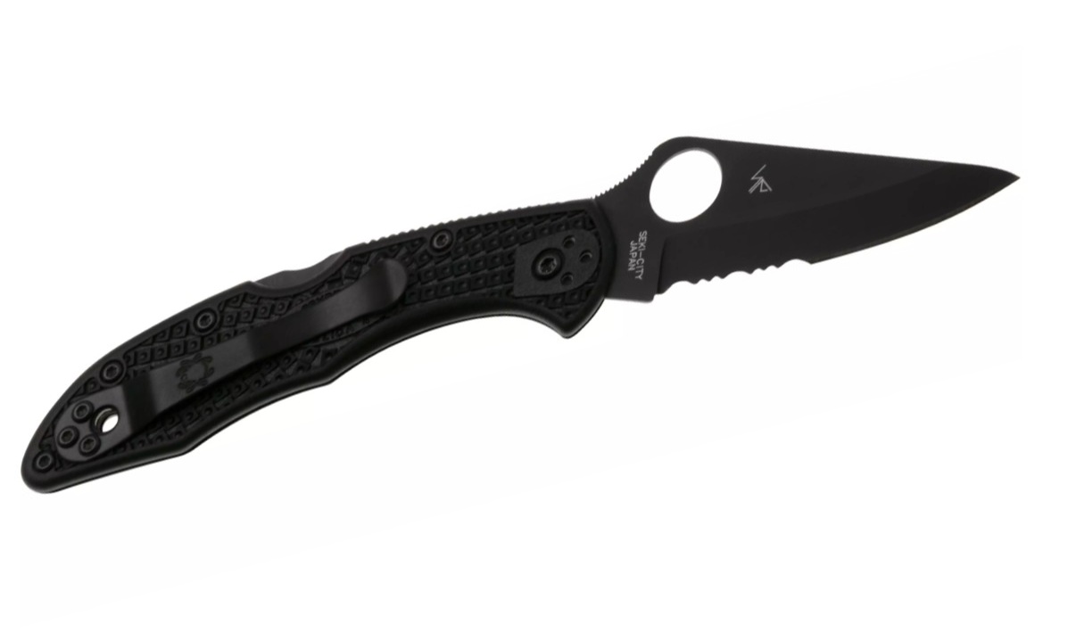 Delica 4 Folding Knife 2-7/8″ VG10 Black Combo Blade, Black FRN Handle C11PSBBK