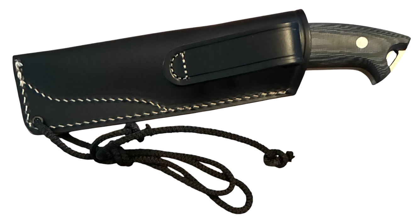 K-2 Bushcraft Fixed Blade Knife Satin Bohler N690 SS Blade Black Canvas Micarta Handle Black Leather Belt Sheath 1329-TGRF1-U1