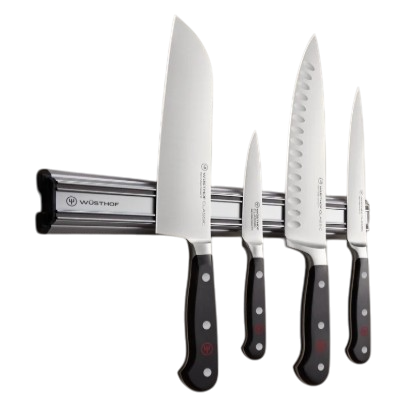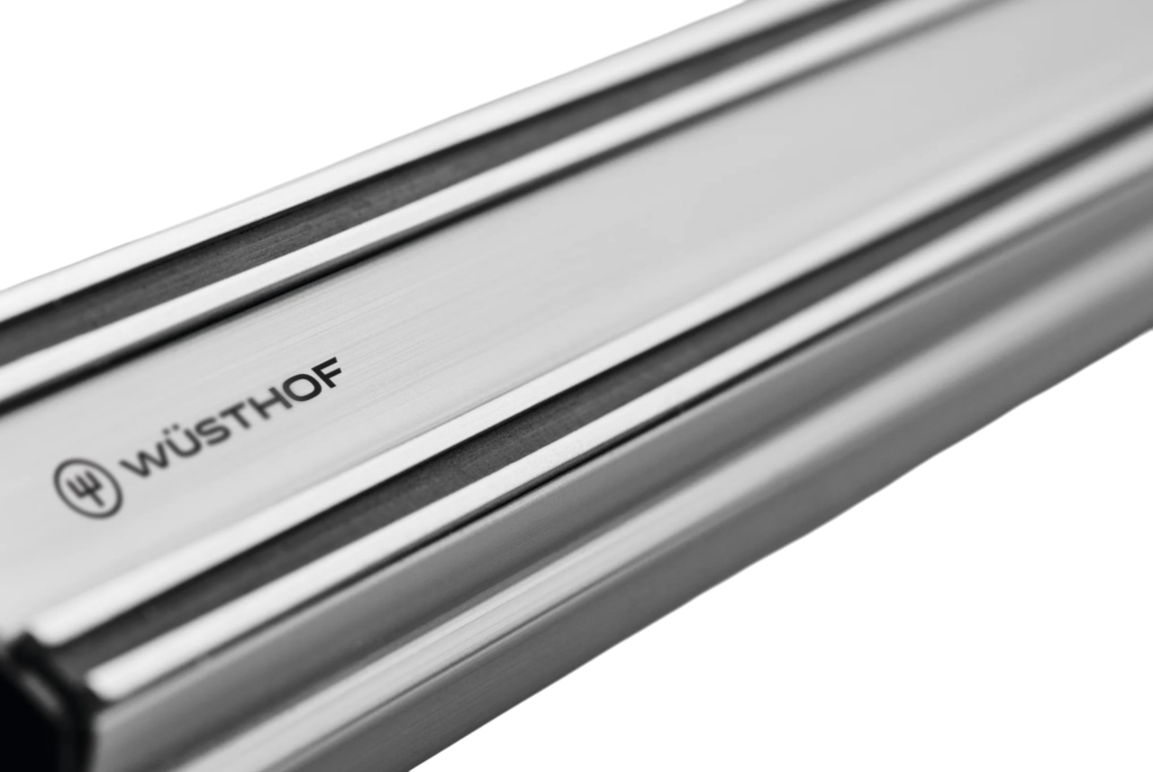 A Magnetic Rack for the storage and display of your knives. The Magnetic Rack can be attached to the wall or to tiles. Two extra-strong magnets hold the knives safely and save space. WÜSTHOF Magnetic Racks are available in various lengths and materials. Made in Great Britain.