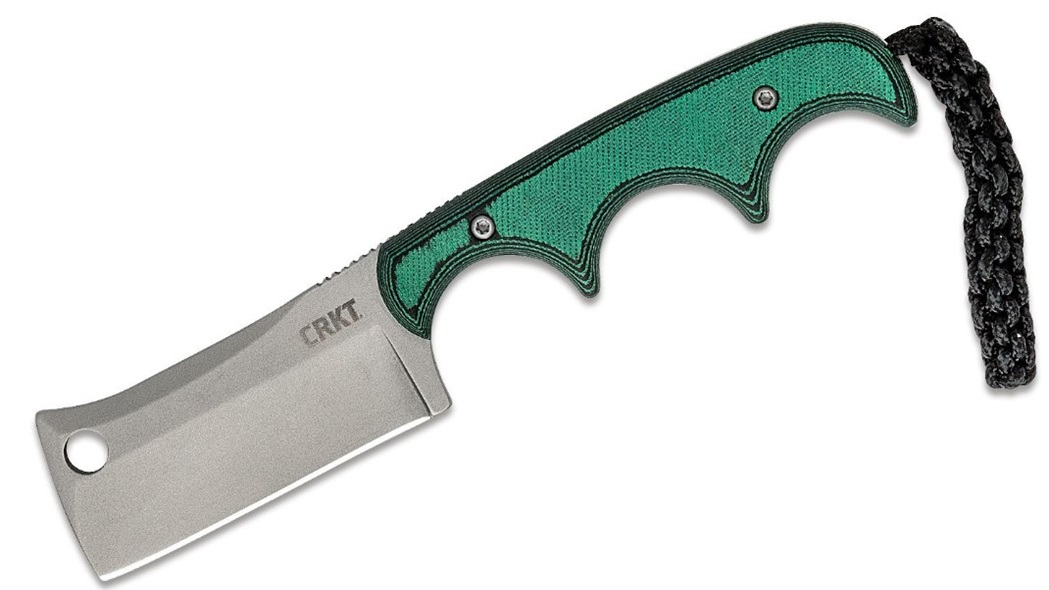 Alan Folts of Melbourne, Florida released the original design years ago and it has since expanded to a full line of outdoor fixed blade knives. This svelte dynamo packs a lot into its compact design. The 2.1″ high-carbon stainless steel cleaver safely rips through food packets or clothing thanks to the false front edge. The hole in the blade pays homage to the hanging hold on the old style kitchen cleavers.