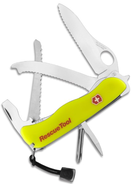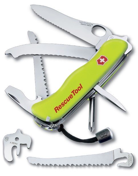The Rescue Tool has been developed by Victorinox in close collaboration with fire and rescue workers. It can be operated with gloves and has luminescent handles. Crate opener and one-hand blade can be locked in place through Liner Lock.